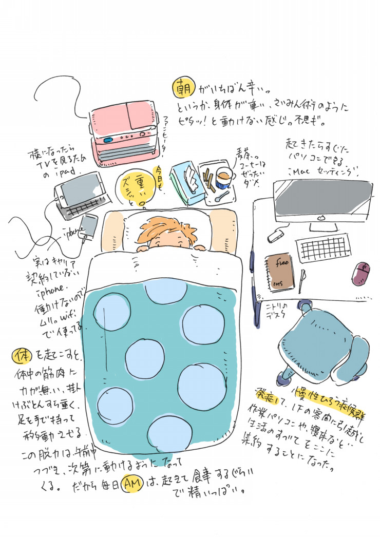 広告 CFSは朝が辛い / イラストエッセイ 2020/11/16 2020/11/17 イラストエッセイ ※アフィリエイト広告を利用しています 慢性疲労症候群(CFS)あるあるのイラストを書きました。 ほぼ自分のことです。 CFSになると疲れがひどいのと、力が入らないのが朝にまとまってきます。 目が覚めた瞬間は動けない感じです。 少しずつ動かして行って午前中かかる感じ。